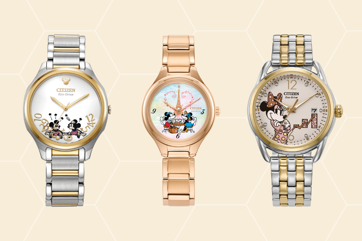 A linha reúne modelos que homenageiam ícones atemporais como Mickey Mouse, Minnie Mouse e Pato Donald. Com estética que vai do lúdico ao refinado, os relógios traduzem a personalidade dos personagens de forma elegante, combinando narrativa visual e a reconhecida tecnologia Eco-Drive, movida por qualquer fonte de luz.